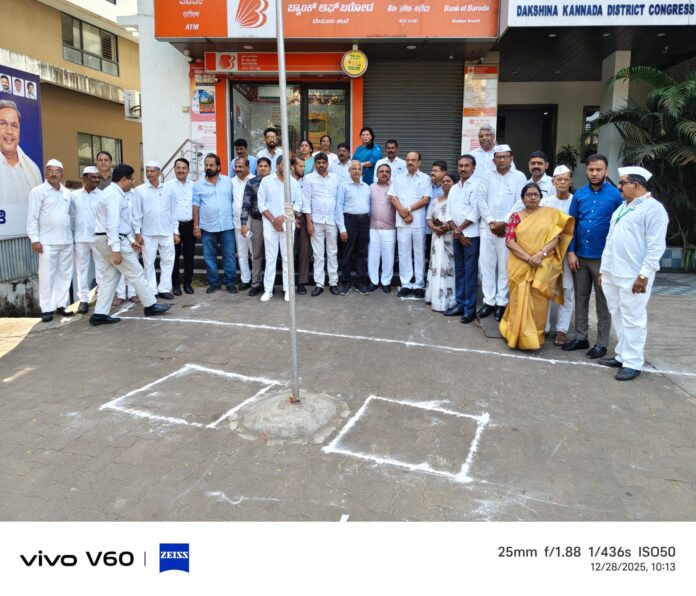 ಭಾರತೀಯ ರಾಷ್ಟ್ರೀಯ ಕಾಂಗ್ರೆಸ್ ಪಕ್ಷದ 141ನೇ ಸಂಸ್ಥಾಪನಾ ದಿನಾಚರಣೆಯ ಪ್ರಯುಕ್ತ ದ.ಕ.ಜಿಲ್ಲಾ ಕಾಂಗ್ರೆಸ್ ವತಿಯಿಂದ ಧ್ವಜಾರೋಹಣ ಕಾರ್ಯಕ್ರಮ ಮಲ್ಲಿಕಟ್ಟೆಯ ಕಾಂಗ್ರೆಸ್ ಭವನದಲ್ಲಿ ರವಿವಾರ ನಡೆಯಿತು.
