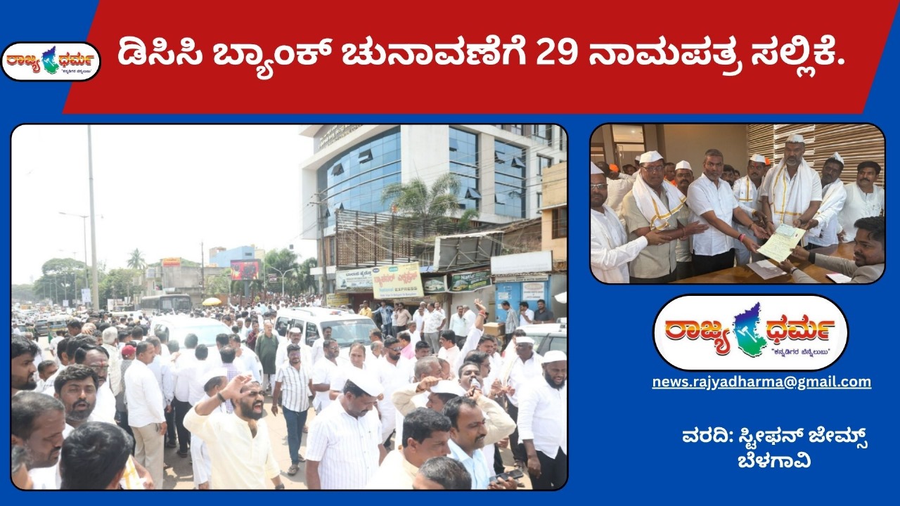 ಡಿಸಿಸಿ ಬ್ಯಾಂಕ್ ಚುನಾವಣೆಗೆ 29 ನಾಮಪತ್ರ ಸಲ್ಲಿಕೆ