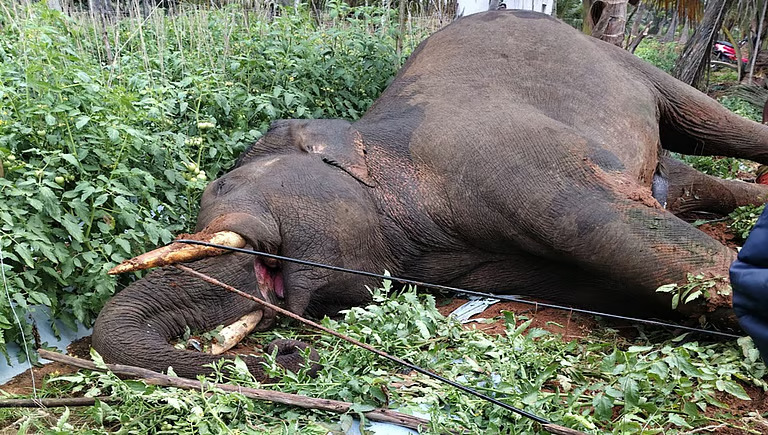 ಆಹಾರ ಅರಸಿ ಬಂದ ಕಾಡಾನೆಗೆ ವಿದ್ಯುತ್‌ ತಂತಿ ತಗುಲಿ ಸ್ಥಳದಲ್ಲೇ ಸಾವು