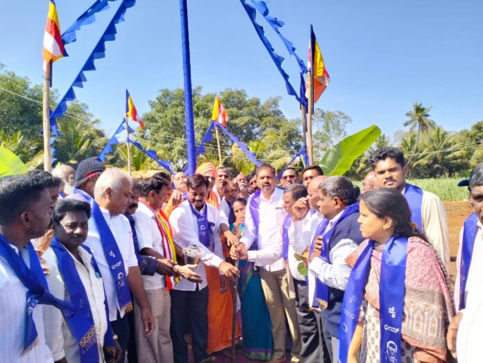 ತಾಲೂಕಿನ ಹೊಸ ಅಗ್ರಹಾರ ಗ್ರಾಮದಲ್ಲಿ ಮಂಗಳವಾರ ಆಯೋಜಿಸಿದ್ದ ಹೋಬಳಿ ಮಟ್ಟದ ಸಂವಿಧಾನ ಶಿಲ್ಪಿ ಡಾ.ಬಿ.ಆರ್.ಅಂಬೇಡ್ಕರ್ ಸಮುದಾಯ ಭವನ ನಿರ್ಮಾಣಕ್ಕೆ ಮಂಗಳವಾರ ಭೂಮಿ ಪೂಜೆ ನೆರವೇರಿಸಿ ಮಾತನಾಡಿದ ಅವರು. ಬಾಬಾ ಸಾಹೇಬರು ನಮ್ಮೆಲ್ಲರಿಗೂ ಮನೆ ದೇವರಿದ್ದಂತೆ. ಅವರು ರಚಿಸಿಕೊಟ್ಟ ಸಂವಿಧಾನದಿಂದ ಇಂದು ನಾವೆಲ್ಲ ಇಂತಹ ಉನ್ನತ ಸ್ಥಾನಮಾನಗಳನ್ನು ಅಲಂಕರಿಸಿದ್ದೇವೆ ಎಂದರು.