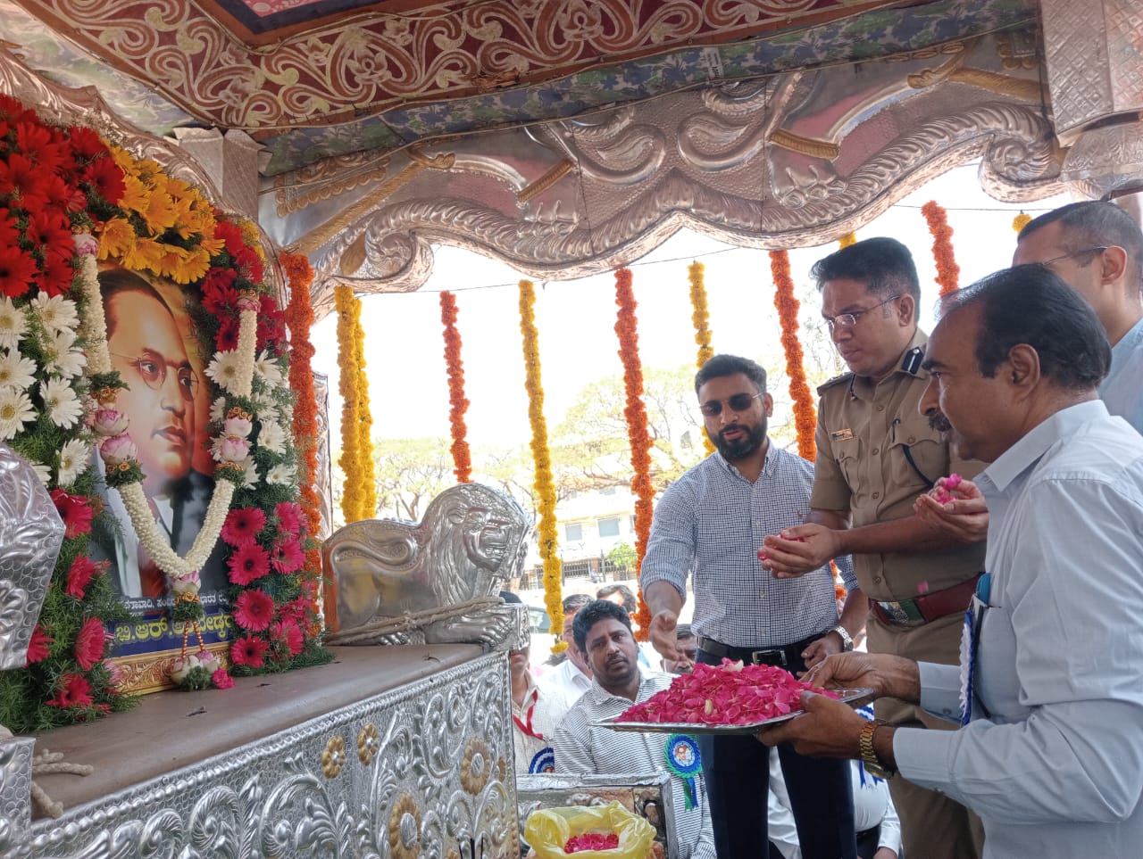 ವೇದಿಕೆ ಕಾರ್ಯಕ್ರಮಕ್ಕೂ ಮುನ್ನ ಜಿಲ್ಲಾ ಕ್ರೀಡಾಂಗಣದಲ್ಲಿ ಜಿಲ್ಲಾಧಿಕಾರಿ ಡಾ. ಅವಿನಾಶ್ ಮೆನನ್ ರಾಜೇಂದ್ರನ್, ಜಿಲ್ಲಾ ಪಂಚಾಯತ್ ಮುಖ್ಯಕಾರ್ಯ ನಿರ್ವಹಣಾಧಿಕಾರಿ ದಿಗ್ವಿಜಯ್ ಬೋಡ್ಕೆ, ಜಿಲ್ಲಾ ಪೊಲೀಸ್ ವರಿಷ್ಠಾಧಿಕಾರಿ ಕಾರ್ತಿಕ್ ರೆಡ್ಡಿ ಅವರು ಬಾಬಾ ಸಾಹೇಬ್ ಡಾ. ಬಿ.ಆರ್. ಅಂಬೇಡ್ಕರ್ ರವರ ಭಾವಚಿತ್ರಕ್ಕೆ ಪುಷ್ಪನಮನ ಸಲ್ಲಿಸಿದರು. ಮೆರವಣಿಗೆಯು ಜಿಲ್ಲಾ ಕ್ರೀಡಾಂಗಣದಿಂದ ಜಿಲ್ಲಾಧಿಕಾರಿಗಳ ಕಚೇರಿ ಸಂಕೀರ್ಣದವರಿಗೆ ವಿವಿಧ ಕಲಾತಂಡಗಳೊಂದಿಗೆ ಸಾಗಿತು.