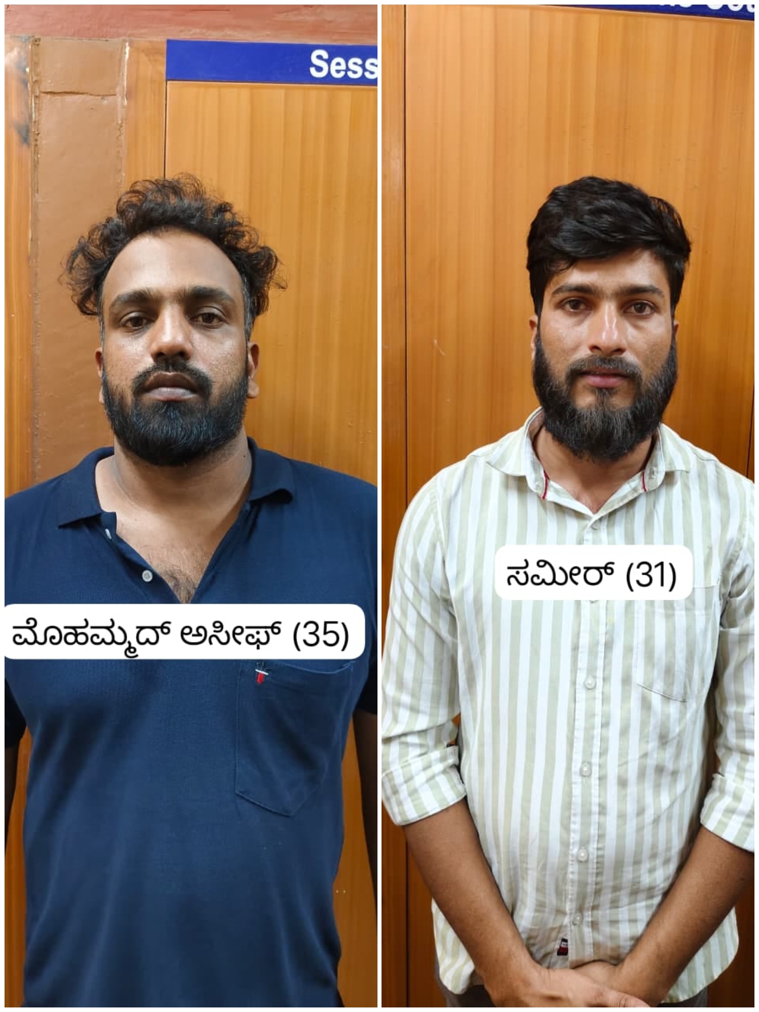 ಗಾಂಜಾ ಮಾರಾಟಕ್ಕೆ ಯತ್ನಿಸುತ್ತಿದ್ದ ಇಬ್ಬರನ್ನು ಬಂಧಿಸಿರುವ ಘಟನೆ ದಕ್ಷಿಣ ಕನ್ನಡ ಜಿಲ್ಲೆಯ ಬಂಟ್ವಾಳದ ತುಂಬೆ ಗ್ರಾಮದ ಹನಮನಗರ ಎಂಬಲ್ಲಿ ನಡೆದಿದೆ. ರಾಷ್ಟ್ರೀಯ ಹೆದ್ದಾರಿ ಬಳಿ ಯಾರೋ ವ್ಯಕ್ತಿಗಳು ಅಕ್ರಮವಾಗಿ ನಿಷೇದಿತ ಮಾದಕ ವಸ್ತುವನ್ನು ಮಾರಾಟ ಮಾಡಲು ವಶದಲ್ಲಿಟ್ಟುಕೊಂಡಿರುವ ಬಗ್ಗೆ ಮಾಹಿತಿ ಬಂದ ಮೇರೆಗೆ ಮಂಜುನಾಥ ಟಿ, ಪೊಲೀಸ್ ಉಪ ನಿರೀಕ್ಷಕರು (ಕಾ&ಸು), ಬಂಟ್ವಾಳ ಗ್ರಾಮಾಂತರ ಪೊಲೀಸ್ ಠಾಣೆ ರವರು, ಸಿಬ್ಬಂದಿಗಳೊಂದಿಗೆ ಸದ್ರಿ ಸ್ಥಳಕ್ಕೆ ತೆರಳಿ ಪರಿಶೀಲಿಸಿದ್ದಾರೆ. ಆಗ ರಾಷ್ಟ್ರೀಯ ಹೆದ್ದಾರಿಯ ಪಕ್ಕ ನಿರ್ಜನ ಪ್ರದೇಶದಲ್ಲಿ ಇಬ್ಬರು ವ್ಯಕ್ತಿಗಳು KA-19-MN-3664 ನೇ ನೊಂದಣಿ ಸಂಖ್ಯೆಯ ಕಾರು ಮತ್ತು KA-19-AE-0166 ನೇ ನೊಂದಣಿ ಸಂಖ್ಯೆಯ ಆಟೋ ರಿಕ್ಷಾದ ಬಳಿ ಅನುಮಾನಾಸ್ಪದವಾಗಿ ನಿಂತುಕೊಂಡಿದ್ದು, ಅವರುಗಳನ್ನು ಹಿಡಿದು ವಿಚಾರಿಸಿದಾಗ ಒಬ್ಬಾತ ಬಂಟ್ವಾಳ ತುಂಬೆ ನಿವಾಸಿ ಸಮೀರ್ (31) & ಮತ್ತೋರ್ವ ಬಂಟ್ವಾಳ ಗೂಡಿನ ಬಳಿ ನಿವಾಸಿ ಮೊಹಮ್ಮದ್ ಅಸೀಫ್ (35) ಎಂಬುದಾಗಿ ತಿಳಿಸಿದ್ದಾರೆ. ವಿಚಾರಣೆಯ ವೇಳೆ ತಾವುಗಳು ಅಧಿಕ ಹಣ ಗಳಿಸುವ ಉದ್ದೇಶದಿಂದ ನಿಷೇಧಿತ ಮಾದಕವಸ್ತುವಾದ ಗಾಂಜಾ ಮಾರಾಟಕ್ಕೆ ಯತ್ನಿಸುತ್ತಿರುವುದಾಗಿ ಒಪ್ಪಿಕೊಂಡಿದ್ದು, ತಪಾಸಣೆ ನಡೆಸಿದಾಗ ಕಾರಿನಲ್ಲಿ 450 ಗ್ರಾಂ. ಗಾಂಜಾ ಹಾಗೂ ರಿಕ್ಷಾದಲ್ಲಿ 360 ಗ್ರಾಂ ಗಾಂಜಾ ಪತ್ತೆಯಾಗಿದೆ.