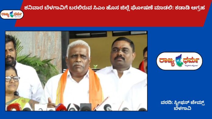 ಬೆಳಗಾವಿ : ಜಿಲ್ಲೆಯ ಭೌಗೋಳಿಕವಾಗಿ ದೊಡ್ಡದಾಗಿದೆ ನಾಳೆ ಶನಿವಾರ ಬೆಳಗಾವಿಗೆ ಬರುತ್ತಿರುವ ಮುಖ್ಯಮಂತ್ರಿ ಸಿದ್ದರಾಮಯ್ಯ ಹೊಸ ಜಿಲ್ಲೆಗಳನ್ನು ಘೋಷಣೆ ಮಾಡಬೇಕು ಎಂದು ರಾಜ್ಯಸಭಾ ಸದಸ್ಯ ಈರಣ್ಣಾ ಕಡಾಡಿ ಆಗ್ರಹಿಸಿದರು.