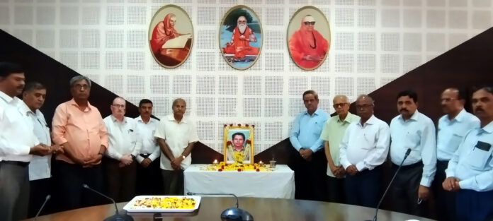 ಮೈಸೂರು: ಜೆಎಸ್ಎಸ್ ಮಹಾವಿದ್ಯಾಪೀಠದ ಆಡಳಿತ ನಿರ್ವಹಣೆ, ಮಾಹಿತಿ ಮತ್ತು ಅಂಕಿಅಂಶಗಳ ವಿಭಾಗದ ನಿರ್ದೇಶಕರಾಗಿ ಸೇವೆ ಸಲ್ಲಿಸಿದ್ದ ಹೆಚ್.ಎಸ್.ನಾಗರಾಜ್ ಅವರು ಜು.೨೯ರಂದು ವಯೋಸಹಜ ಅನಾರೋಗ್ಯದಿಂದ ನಿಧನರಾಗಿದ್ದು, ಅವರ ನಿಧನಕ್ಕೆ ಜೆಎಸ್ಎಸ್ ಮಹಾವಿದ್ಯಾಪೀಠದ ಸಭಾಂಗಣದಲ್ಲಿ ನಡೆದ ಶ್ರದ್ಧಾಂಜಲಿ ಸಭೆಯಲ್ಲಿ ಸಂತಾಪ ಸೂಚಿಸಲಾಯಿತು.