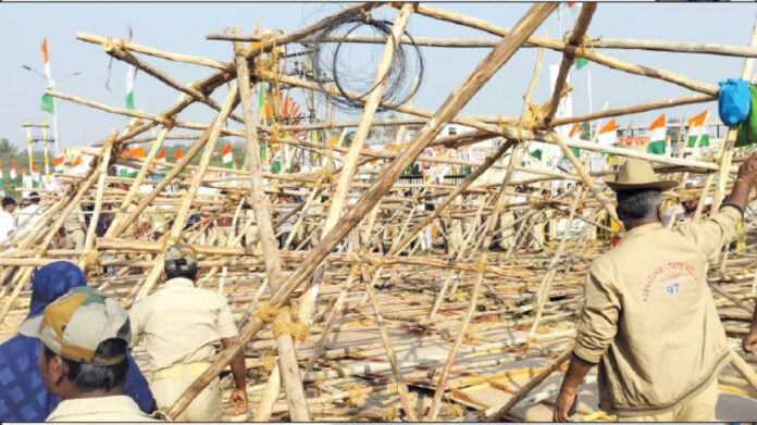ಹುಬ್ಬಳ್ಳಿ : ಮುಖ್ಯಮಂತ್ರಿಗಳು ಸೇರಿದಂತೆ ಹಲವು ಗಣ್ಯರು ಪಾಲ್ಗೊಳ್ಳಬೇಕಿದ್ದ ಮನೆ ಹಸ್ತಾಂತರ ಕಾರ್ಯಕ್ರಮ ಆರಂಭವಾಗುವ ಮುನ್ನವೇ ವೇದಿಕೆ ಮುಂಭಾಗ ಅಳವಡಿಸಿದ್ದ ಕಟೌಟ್ಗಳು ಏಕಾಏಕಿ ಕುಸಿದ ಪರಿಣಾಮ ನಾಲ್ವರು ಗಾಯಗೊಂಡಿದ್ದಾರೆ.