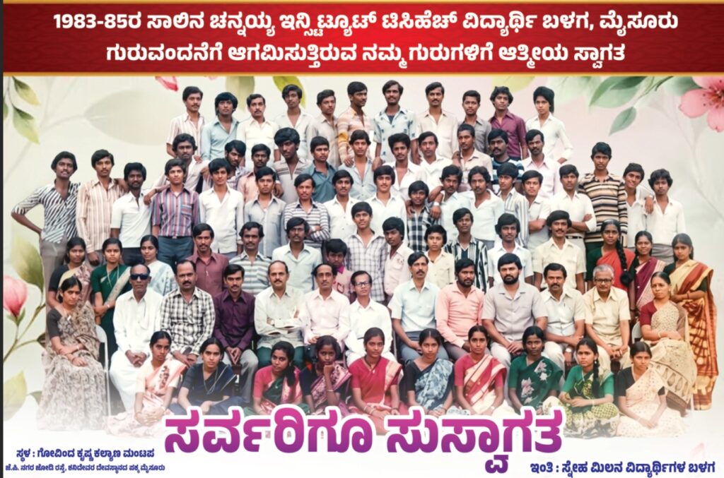ವಿದ್ಯಾರ್ಥಿ ಜೀವನ ಶ್ರೇಷ್ಠ ಜೀವನ. ವಿದ್ಯಾರ್ಥಿ ಜೀವನದಲ್ಲಿ ಕಲ್ಮಶವಿಲ್ಲದ ಪ್ರೀತಿ, ಪ್ರೇಮ, ವಿಶ್ವಾಸ, ನಂಬಿಕೆ, ಸ್ಪೂರ್ತಿ ,ಚೈತನ್ಯ, ಸಹಕಾರ ಬಾಂಧವ್ಯ, ಕರುಣೆ, ಸಹೋದರ ಭಾವನೆ ,ಜಾತಿ ,ಮತ, ಪಂಥ ಭೇದಗಳಿಲ್ಲದ ಅತ್ಯಂತ ಶ್ರೇಷ್ಠವಾದ ಕ್ಷಣಗಳ ಜೀವನ ವಿದ್ಯಾರ್ಥಿ ಜೀವನವಾಗಿದೆ .ವಿದ್ಯಾರ್ಥಿ ಜೀವನವನ್ನು ಹೃದಯ ಸ್ಪರ್ಶಿ ಕಾಲವೆಂದು ಸುವರ್ಣ ಯುಗವೆಂದು ಹಿರಿಯರು ಕರೆಯುತ್ತಾರೆ. ಅದೇ ಕಾರಣಕ್ಕಾಗಿ 40 ವರ್ಷಗಳ ನಂತರ ಮೈಸೂರು, ಮಂಡ್ಯ, ಚಾಮರಾಜನಗರ, ಹಾಸನ ,ಮಡಿಕೇರಿ ವಿವಿಧ ಜಿಲ್ಲೆಗಳಿಂದ ಮೈಸೂರಿಗೆ ಆಗಮಿಸಿ ಅಂದು ಶೈಕ್ಷಣಿಕ ಚಟುವಟಿಕೆಗಳ ಪವಿತ್ರ ಕೇಂದ್ರವಾಗಿದ್ದ ಇನ್ಸ್ಟಿಟ್ಯೂಟ್ ಆಫ್ ಎಜುಕೇಶನ್ ಚೆನ್ನಯ್ಯ ಇನ್ಸ್ಟಿಟ್ಯೂಟ್ ಸಂಸ್ಥೆಗೆ ಸೇರಿ ಟಿಸಿಎಚ್ ತರಬೇತಿ ಪಡೆದು ಇಂದು ಹಲವಾರು ಜಿಲ್ಲೆಗಳಲ್ಲಿ ಶಿಕ್ಷಕರಾಗಿ ಅತ್ಯುತ್ತಮ ಸೇವೆ ಸಲ್ಲಿಸಿ ವಿವಿಧ ಕ್ಷೇತ್ರಗಳಲ್ಲಿ ಅಪಾರ ಸೇವೆ ಸಲ್ಲಿಸಿ ಸಮಾಜಮುಖಿಯಾಗಿ ಬೆಳೆದು 40 ವರ್ಷಗಳ ನಂತರ 80ಕ್ಕೂ ಹೆಚ್ಚು ವಯೋಮಾನದ ಬೋಧಿಸಿದ ಹಿರಿಯ ಎಲ್ಲಾ ಶಿಕ್ಷಕರನ್ನು ಗುರುತಿಸಿ ಅವರಿರುವ ಸ್ಥಳಗಳನ್ನು ಕಂಡುಹಿಡಿದು ಅವರನ್ನು ಪ್ರೀತಿಯಿಂದ ಬರಮಾಡಿಕೊಂಡು ವಿದ್ಯಾರ್ಥಿಯ ಪ್ರೀತಿಯ ಗೌರವವನ್ನು ಸಲ್ಲಿಸುವ ಅಭೂತಪೂರ್ವ ಕಾರ್ಯ ನಡೆಯಲಿದೆ .