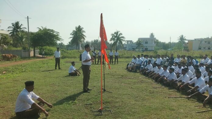 ತಾಲ್ಲೂಕು ರಾಷ್ಟ್ರೀಯ ಸ್ವಯಂಸೇವಕ ಸಂಘದ ವತಿಯಿಂದ ಪಟ್ಟಣದ ಗಣಪತಿ ದೇವಸ್ಥಾನ ಹೌಸಿಂಗ್ ಬೋರ್ಡ್ ನಿಂದ ಹೊರಟು ಪಟ್ಟಣದ ಪ್ರಮುಖ ರಸ್ತೆಗಳಲ್ಲಿ ಗಣವೇಶದಾರರು ಆಕರ್ಷಕ ಪಥಸಂಚಲನ ನಡೆಸಿದ ನಂತರ ಮಾತನಾಡಿದರು. ರಾಷ್ಟ್ರಹಿತ, ಶಿಸ್ತು, ತ್ಯಾಗ ಮತ್ತು ಸಮರ್ಪಣೆಯ ಭಾವ ರಾಷ್ಟ್ರೀಯ ಸ್ವಯಂಸೇವಕ ಸಂಘದ ಮೂಲ ದ್ಯೆಯವಾಕ್ಯವಾಗಿದೆ ಎಂದರು.