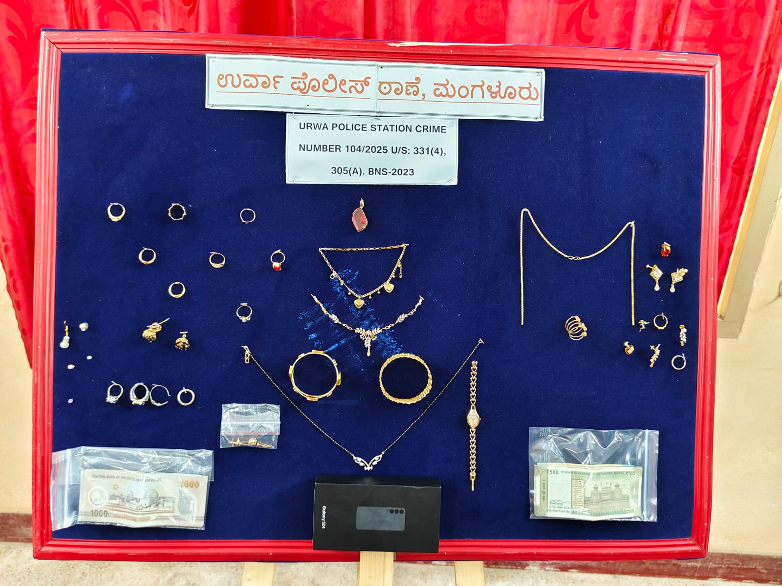 ಹಿರಿಯ ಪೊಲೀಸ್ ಅಧಿಕಾರಿಗಳು ಸೇರಿದಂತೆ ಉರ್ವ ಪೊಲೀಸ್ ಠಾಣೆಯ ಠಾಣಾಧಿಕಾರಿ ಮತ್ತು ಸಿಬ್ಬಂದಿಯವರು ಹಾಗೂ ಶ್ವಾನ ದಳ ಹಾಗೂ ಫಿಂಗರ್ ಪ್ರಿಂಟ್ ತಜ್ಞರ ತಂಡವು ಕೃತ್ಯ ನಡೆದ ಸ್ಥಳಕ್ಕೆ ಭೇಟಿ ನೀಡಿ‌ ಪರಿಶೀಲಿಸಿ, ಆರೋಪಿ ಪತ್ತೆ ಕಾರ್ಯವನ್ನು ನಡೆಸಿತು. ಪ್ರಕರಣ ದಾಖಲಾಗಿ ಸುಮಾರು 20 ಗಂಟೆಗಳ ಒಳಗಾಗಿ ಶೀಘ್ರ ಕಾರ್ಯ ಪ್ರವೃತ್ತರಾಗಿ, ಈ ಮನೆ ಕಳ್ಳತನಗಳಲ್ಲಿ ಭಾಗಿಯಾಗಿದ್ದ ಇಬ್ಬರು ಅಂತರಾಜ್ಯ ಮನೆ ಕಳ್ಳರನ್ನು ದಿನಾಂಕ 21-10-2025 ರ ಬೆಳಗಿನ ಜಾವ ಬೆಂಗಳೂರಿನಲ್ಲಿ ದಸ್ತಗಿರಿ ಮಾಡಿ ಆರೋಪಿತರಿಂದ ಪ್ರಕರಣದಲ್ಲಿ ಕಳ್ಳತನ ಮಾಡಿದ್ದ ಎಲ್ಲಾ ಚಿನ್ನಾಭರಣಗಳನ್ನು, ರೂ 5000/- ನಗದು ಹಣ, ರೂ 70,000/- ಬೆಲೆಯ 3000 Dirham ಹಾಗೂ ಮೊಬೈಲ್ ಫೋನನ್ನು ವಶಕ್ಕೆ ಪಡೆಯಲಾಗಿದೆ.
