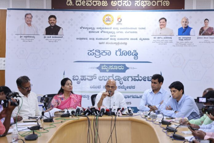 ಮೈಸೂರಿನ ಜಿಲ್ಲಾ ಪಂಚಾಯತಿ ಸಭಾಂಗಣದಲ್ಲಿ ನಡೆದ ಸುದ್ದಿಗೋಷ್ಠಿಯಲ್ಲಿ ಮಾತನಾಡಿದ ಸಚಿವ ಡಾ. ಶರಣಪ್ರಕಾಶ್ ಆರ್ ಪಾಟೀಲ್, ಉದ್ಯೋಗ ಮೇಳದಲ್ಲಿ ಭಾಗಿಯಾಗಲು ಈಗಾಗಲೇ 24 ಸಾವಿರ ಮಂದಿ ನೋಂದಣಿ ಮಾಡಿಕೊಂಡಿದ್ದು, 15 ಸಾವಿರ ಮಂದಿ ಎಲ್ಲಾ ಪ್ರಕ್ರಿಯೆಗಳನ್ನು ಪೂರ್ಣಗೊಳಿಸಿದ್ದಾರೆ. ಮೈಸೂರಿನ ಮಹಾರಾಜ ಕಾಲೇಜು ಮೈದಾನದಲ್ಲಿ ಅಕ್ಟೋಬರ್ 17ರಂದು ಬೆಳಿಗ್ಗೆ 9 ಗಂಟೆಯಿಂದ ಸಂಜೆ 5 ಗಂಟೆಯವರೆಗೆ ಉದ್ಯೋಗ ಮೇಳ ನಡೆಯಲಿದೆ. ರಾಜ್ಯದ ವಿವಿಧೆಡೆಗಳಿಂದ ಆಗಮಿಸಲಿರುವ ಉದ್ಯೋಗಾಕಾಂಕ್ಷಿಗಳು ಉದ್ಯೋಗ ಮೇಳದಲ್ಲಿ ಭಾಗಿಯಾಗಲಿದ್ದಾರೆ. ಯುವನಿಧಿ ಯೋಜನೆಯಡಿ ಈಗಾಗಲೇ ನೋಂದಣಿಯಾಗಿರುವ ಮೈಸೂರು ವಿಭಾಗದ 43577 ಫಲಾನುಭವಿಗಳ ಜೊತೆಗೆ ಇತರೆ ವಿದ್ಯಾವಂತ ನಿರುದ್ಯೋಗಿಗಳಿಗೆ ಉದ್ಯೋಗ ನೀಡಲು ಅವಕಾಶ ಹೊಂದಿರುವ ಉದ್ಯೋಗದಾತರೊಂದಿಗೆ ನೇರ ಭೇಟಿಗಾಗಿ ಅವಕಾಶ ಕಲ್ಪಿಸಲು ಈ ಉದ್ಯೋಗ ಮೇಳ ಆಯೋಜಿಸಲಾಗಿದೆ. ಇದುವರೆಗೂ 221 ಕಂಪನಿಗಳು ಉದ್ಯೋಗ ಮೇಳದಲ್ಲಿ ಭಾಗಿಯಾಗುವುದಾಗಿ ತಿಳಿಸಿದ್ದು ಮತ್ತಷ್ಟು ಕಂಪನಿಗಳು ಸೇರ್ಪಡೆ ಆಗಲಿವೆ ಎಂದು ಮಾಹಿತಿ ನೀಡಿದರು.