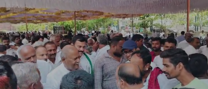 ಅಂಬೇಡ್ಕರ್ ಭವನದ ಒಳ, ಹೊರಾವರಣದಲ್ಲಿ ಜೆಡಿಎಸ್ ಕಾರ್ಯಕರ್ತರು ತುಂಬಿ ತುಳುಕುತ್ತಿದ್ದಾರೆ.