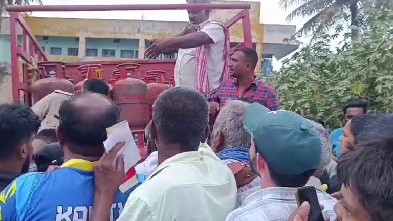 ಬಳಿಕ ಪೊಲೀಸರ ಸಮ್ಮುಖದಲ್ಲಿ ಸರತಿ ಸಾಲಿನಲ್ಲಿ ಗ್ರಾಹಕರನ್ನು ನಿಲ್ಲಿಸಿ ಸಿಲಿಂಡರ್ ವಿತರಿಸಲಾಯಿತು.