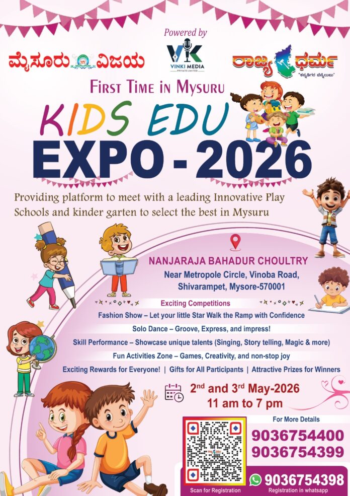 Join us at Edu Expo 2026 at Nanjaraj Bahadur Choultry, Mysuru on 2nd and 3rd May 2026, a vibrant event filled with exciting competitions, fun activities, and unforgettable moments for kids and families.
