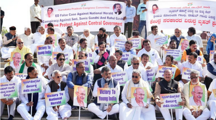 ಆಡಳಿತ ಪಕ್ಷ ಕಾಂಗ್ರೆಸ್ ಸದಸ್ಯರು ಇಂದು ಬೆಳಗ್ಗೆ ಕಲಾಪಕ್ಕೆ ಮುನ್ನ, ಗ್ರಾಮೀಣ ಉದ್ಯೋಗ ಖಾತ್ರಿ ಯೋಜನೆ ನರೇಗಾ ಹೆಸರನ್ನು ಬದಲಿಸುವ ಕೇಂದ್ರ ಸರ್ಕಾರದ ಕ್ರಮವನ್ನು ವಿರೋಧಿಸಿ ಹಾಗೂ ನ್ಯಾಷನಲ್ ಹೆರಾಲ್ಡ್ ಪ್ರಕರಣದಲ್ಲಿ ಕಾಂಗ್ರೆಸ್ ವಿರುದ್ಧ ಬಿಜೆಪಿ “ದ್ವೇಷ ರಾಜಕೀಯ” ನಡೆಸುತ್ತಿದೆ ಎಂದು ಆರೋಪಿಸಿ ಸಿಎಂ-ಡಿಸಿಎಂ ಸೇರಿದಂತೆ ಬಹುತೇಕ ಕಾಂಗ್ರೆಸ್ ಸದಸ್ಯರು ಹೊರಗೆ ಗಾಂಧಿ ಪ್ರತಿಮೆ ಮುಂದೆ ಪ್ರತಿಭಟನೆ ನಡೆಸಿದರು.