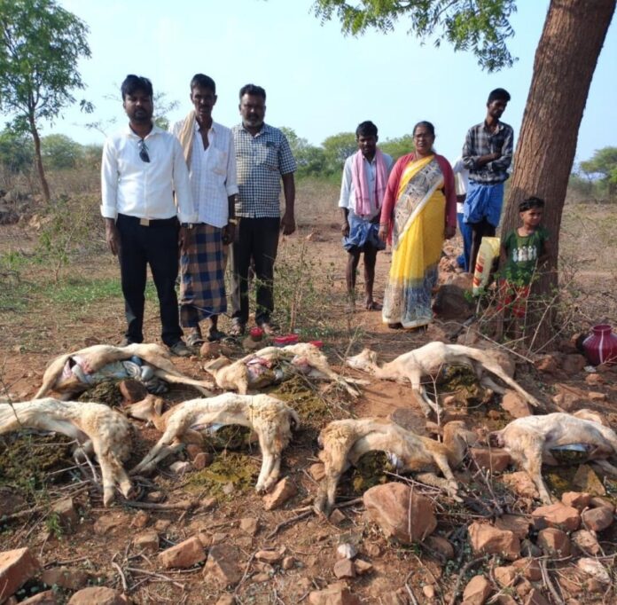 ಹನೂರು : ತಾಲೂಕಿನ ಕುರಟ್ಟಿಹೊಸೂರು ಸಮೀಪದ ಅರಬಗೆರೆ-75 ಗ್ರಾಮದಲ್ಲಿ ಮುತ್ತುರಾಜು ಅವರಿಗೆ ಸೇರಿದ ಏಳು ಕುರಿಗಳು ಅನುಮಾನಾಸ್ಪದವಾಗಿ ಸಾವನ್ನಪ್ಪಿದ ಘಟನೆ ವರದಿಯಾಗಿದೆ.