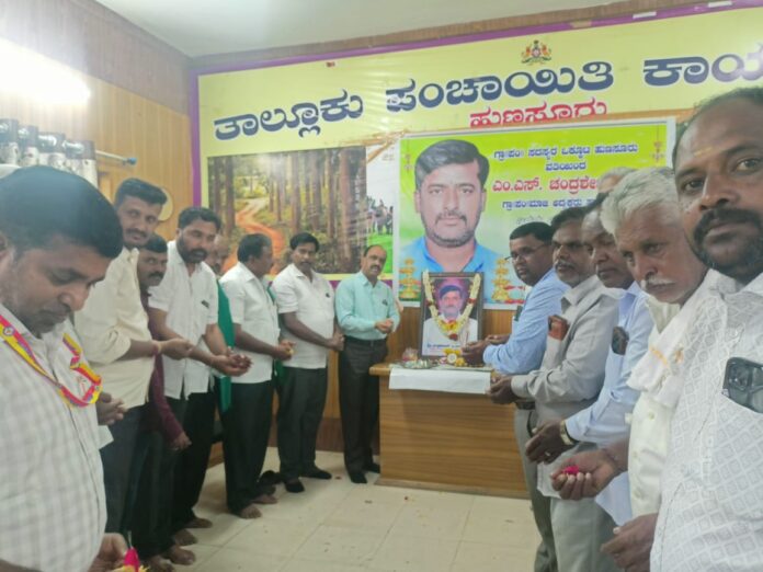 ನಗರದ ತಾ.ಪಂ. ಸಭಾಂಗಣದಲ್ಲಿ ಇತ್ತೀಚಿಗೆ ಆಕಸ್ಮಿಕ ಅಪಘಾತದಲ್ಲಿ ಮೃತರಾದ ಎಸ್.ಎಂ.ಚಂದ್ರಶೇಖರ್ ಅವರ ಶ್ರದ್ಧಾಂಜಲಿ ಕಾರ್ಯಕ್ರಮದಲ್ಲಿ ಮಾತನಾಡಿದ ಅವರು, ಮೃತ ಚಂದ್ರು ಅವರು ಹಾಲಿ ಗ್ರಾಮ ಪಂ ಸದಸ್ಯರು ಮಾಜಿ ಅಧ್ಯಕ್ಷರಾಗಿ, ಒಬ್ಬ ಸ್ನೇಜೀವಿಯಾಗಿದ್ದರು. ಅಂತವರು ನಮ್ಮನ್ನ ಅಗಲಿರುವುದು ಮನಸ್ಸಿಗೆ ನೋವು ತಂದಿದೆ ಎಂದರು.