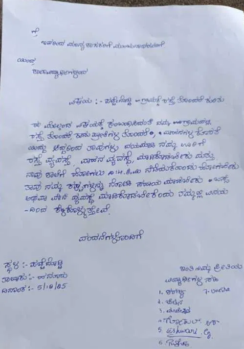 ಮುಖ್ಯಮಂತ್ರಿಗೆ ಬರೆದ ಪತ್ರದಲ್ಲಿ ತಮ್ಮ ದಯನೀಯ ಸ್ಥಿತಿ ಹೇಳಿಕೊಂಡಿರುವ ವಿದ್ಯಾರ್ಥಿಗಳು, ನಮ್ಮ ಗ್ರಾಮದಲ್ಲಿ ರಸ್ತೆ ವ್ಯವಸ್ಥೆ ಸರಿಯಿಲ್ಲ. ಕಾಡಾನೆ, ಚಿರತೆ ಮತ್ತು ಹುಲಿಯಂತಹ ಪ್ರಾಣಿಗಳು ರಸ್ತೆಯಲ್ಲಿಯೇ ಸಂಚರಿಸುತ್ತಿರುತ್ತವೆ. ನಾವು ದಿನ ನಿತ್ಯ ಶಾಲಾ- ಕಾಲೇಜುಗಳಿಗೆ ಹೋಗಲು ಸುಮಾರು 14 ಕಿ.ಮೀ ನಡೆಯಬೇಕು. ನಮಗೆ ಶಾಲಾ ವಾಹನ ಅಥವಾ ಬಸ್ಸಿನ ವ್ಯವಸ್ಥೆಯೂ ಇಲ್ಲದ ಕಾರಣ ಕಾಲ್ನಡಿಗೆಯಲ್ಲಿಯೇ ಸಂಚರಿಸಬೇಕಾಗಿದೆ ಎಂದು ತಮ್ಮ ಅಳಲನ್ನು ತೋಡಿಕೊಂಡಿದ್ದಾರೆ. ಅವರ ಕಷ್ಟ ಪರಿಹರಿಸಲು ಬಸ್ ಅಥವಾ ವ್ಯಾನ್ನ ವ್ಯವಸ್ಥೆ ಮಾಡುವಂತೆ ಮುಖ್ಯಮಂತ್ರಿಗಳಲ್ಲಿ ಕೇಳಿಕೊಂಡಿದ್ದಾರೆ. ಜೀವ ಹಾನಿಯ ಅಪಾಯವಿರುವುದರಿಂದ ಆದಷ್ಟು ಬೇಗ ರಸ್ತೆ ಡಾಂಬರೀಕರಣ ಮಾಡಿ, ಬಸ್ ಸಂಚಾರ ಒದಗಿಸುವಂತೆ ವಿನಂತಿಸಿಕೊಂಡಿದ್ದಾರೆ.