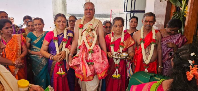 ದಂಪತಿಗಳು ಸೀತಾರಾಮರ ವಿಗ್ರಹಕ್ಕೆ ಧಾರೆ ಎರೆಯುವ ಮೂಲಕ ಸಂತೃಪ್ತರಾದರು