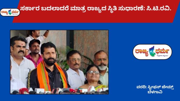 ಬೆಳಗಾವಿ: ರಾಜ್ಯದಲ್ಲಿ ಈಗ ಸಿಎಂ ಬದಲಾವಣೆಯಾದರೆ ಒಬ್ಬ ಭ್ರಷ್ಟ ಹೋಗಿ ಮತ್ತೊಬ್ಬ ಭ್ರಷ್ಟ ಬಂದಂತಾಗುತ್ತದೆ. ಹೀಗಾಗಿ ಸಿಎಂ ಬದಲಾದರೆ ಸಾಲದು, ಸರ್ಕಾರವೇ ಬದಲಾದರೆ ಮಾತ್ರ ರಾಜ್ಯದ ಪರಿಸ್ಥಿತಿ ಸುಧಾರಿಸಬಲ್ಲದು ಎಂದು ವಿಧಾನ ಪರಿಷತ್ ಸದಸ್ಯ ಸಿ.ಟಿ. ರವಿ ಹೇಳಿದರು.