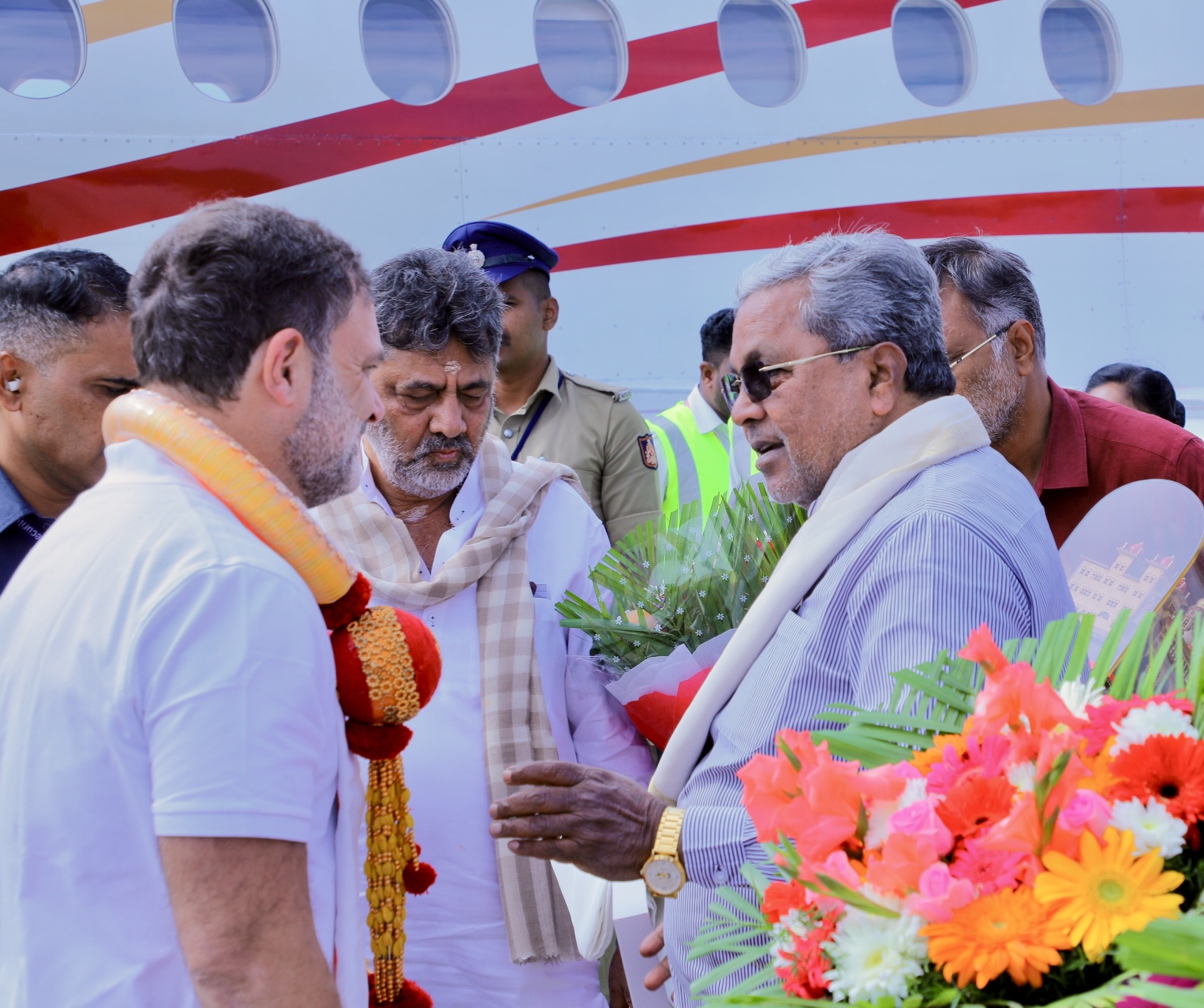 ತಮಿಳುನಾಡಿಗೆ ತೆರಳುವ ಸಂದರ್ಭದಲ್ಲಿ ಮೈಸೂರಿಗೆ ಆಗಮಿಸಿದ ಕಾಂಗ್ರೆಸ್ ನಾಯಕ ರಾಹುಲ್ ಗಾಂಧಿ ಅವರನ್ನು ಸಿಎಂ ಸಿದ್ದರಾಮಯ್ಯ ಆತ್ಮೀಯವಾಗಿ ಸ್ವಾಗತಿಸಿದರು. ಈ ವೇಳೆ ಉಪಮುಖ್ಯಮಂತ್ರಿ ಡಿ.ಕೆ. ಶಿವಕುಮಾರ್, ಸಚಿವ ಕೆ.ಜೆ. ಜಾರ್ಜ್ ಉಪಸ್ಥಿತರಿದ್ದರು.