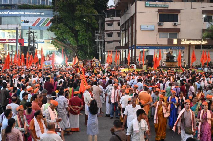 ದಾರಿಯುದ್ದಕ್ಕೂ ಭಜನೆ, ಜಯಕಾರ, ವ್ಯಾಸಧ್ವಜಗಳೊಂದಿಗೆ ಭಕ್ತರು ಸಂಭ್ರಮಿಸಿದರು.