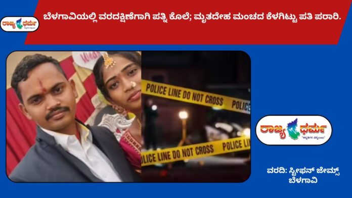 ಬೆಳಗಾವಿ: ತವರು ಮನೆಯಿಂದ ಮತ್ತಷ್ಟು ವರದಕ್ಷಿಣೆ ತಂದು ಕೊಡುವುದಕ್ಕೆ ವಿರೋಧಿಸಿದ ಪತ್ನಿಯನ್ನು ಕೊಂದು ಮಂಚದ ಕೆಳಗೆ ಶವ ಇಟ್ಟು, ಪತಿ ನಾಪತ್ತೆಯಾಗಿರುವ ಘಟನೆ ಜಿಲ್ಲೆಯ ಮೂಡಲಗಿ ತಾಲೂಕಿನ ಕಮಲದಿನ್ನಿ ಗ್ರಾಮದಲ್ಲಿ ನಡೆದಿರುವುದು ತಡವಾಗಿ ಬೆಳಕಿಗೆ ಬಂದಿದೆ.