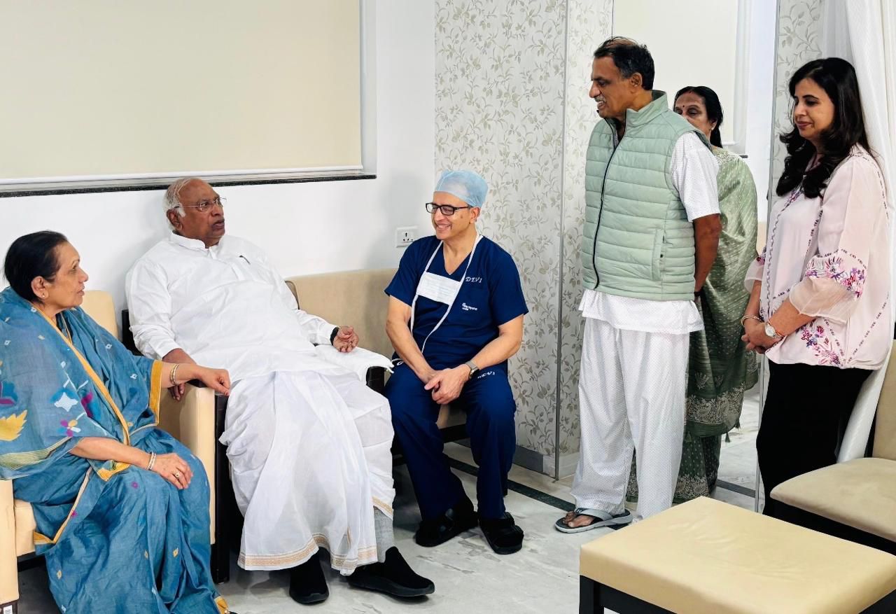 ಅನಾರೋಗ್ಯ ಹಿನ್ನೆಲೆಯಲ್ಲಿ ಬೆಂಗಳೂರಿನ ನಾರಾಯಣ ಹೃದಯಾಲಯದಲ್ಲಿ ಚಿಕಿತ್ಸೆ ಪಡೆದು ಗುಣಮುಖರಾಗುತ್ತಿರುವ ವಿಧಾನ ಪರಿಷತ್ ಶಾಸಕರು ಹಾಗೂ ಕೆಪಿಸಿಸಿ ಕಾರ್ಯಾಧ್ಯಕ್ಷರು ಆಗಿರುವ ಮಂಜುನಾಥ ಭಂಡಾರಿ ಅವರನ್ನು ಇಂದು ಎಐಸಿಸಿ ಅಧ್ಯಕ್ಷರಾದ ಮಲ್ಲಿಕಾರ್ಜುನ ಖರ್ಗೆ ಅವರು ಪತ್ನಿ ಸಮೇತ ಭೇಟಿಯಾಗಿ ಅರೋಗ್ಯ ವಿಚಾರಿಸಿದರು.