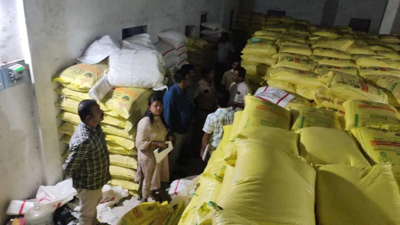 ಇಂಡಸ್ಟ್ರಿಯಲ್ ಏರಿಯಾದಲ್ಲಿರುವ ಎಡ್ವಿನ್ ಎಂಬವರ ಮಾಲೀಕತ್ವದ ಗೋಡೌನ್ನಲ್ಲಿ ರೈತರಿಗೆ ವಿತರಿಸಬೇಕಾದ ಯೂರಿಯಾ ಗೊಬ್ಬರವನ್ನು ಅಕ್ರಮವಾಗಿ ಸಂಗ್ರಹಿಸಿ, ಮುಂದಿನ ದಿನಗಳಲ್ಲಿ ಕಾಳ ಸಂತೆಯಲ್ಲಿ ಹೆಚ್ಚಿನ ಬೆಲೆಗೆ ಮಾರಾಟ ಮಾಡುವ ಹುನ್ನಾರ ನಡೆದಿರುವುದು ಬೆಳಕಿಗೆ ಬಂದಿದೆ. ದಾಳಿ ವೇಳೆ ಗೋಡೌನ್ ಮಾಲೀಕನನ್ನು ವಶಕ್ಕೆ ಪಡೆದ ಪೊಲೀಸರು ವಿಚಾರಣೆ ನಡೆಸುತ್ತಿದ್ದಾರೆ.