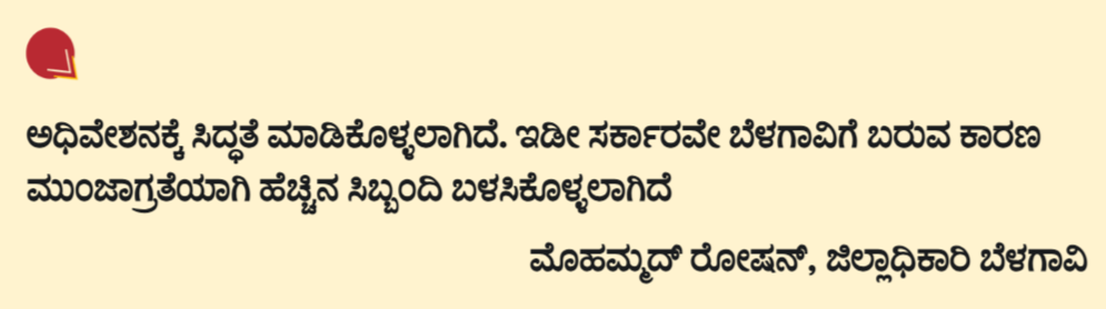 ಬೆಳಗಾವಿ: ಸೋಮವಾರ ಆರಂಭವಾಗುವ, ವಿಧಾನಮಂಡಲದ 14ನೇ ಚಳಿಗಾಲದ ಅಧಿವೇಶನಕ್ಕೆ 10 ಸಾವಿರ ಸಿಬ್ಬಂದಿ ನಿಯೋಜಿಸಲಾಗಿದೆ. ಇದರಲ್ಲಿ 6,000 ಪೊಲೀಸರು, ವಿವಿಧ ಇಲಾಖೆಗಳ ಸಿಬ್ಬಂದಿ ಸೇರಿದ್ದಾರೆ.