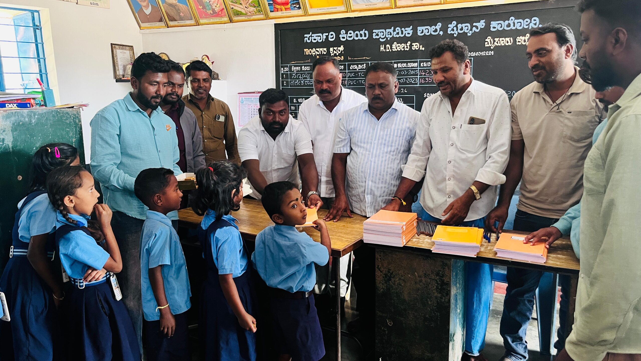 ತಾಲೂಕಿನ ಭೋಗೇಶ್ವರ ಕಾಲೋನಿ ಗ್ರಾಮದಲ್ಲಿ ಚಾಲೆಂಜಿಂಗ್ ಸ್ಟಾರ್ ದರ್ಶನ್ ಅಭಿಮಾನಿಗಳ ವತಿಯಿಂದ ಸರ್ಕಾರಿ ಶಾಲೆಯ ಮಕ್ಕಳಿಗೆ ಪುಸ್ತಕ, ಪೆನ್, ಸಿಹಿ ಹಂಚುವುದರ ಮೂಲಕ ಡೆವಿಲ್ ಚಿತ್ರ ಯಶಸ್ವಿಯಾಗಲಿ ಎಂದು ಶುಭ ಹಾರೈಸಿದರು