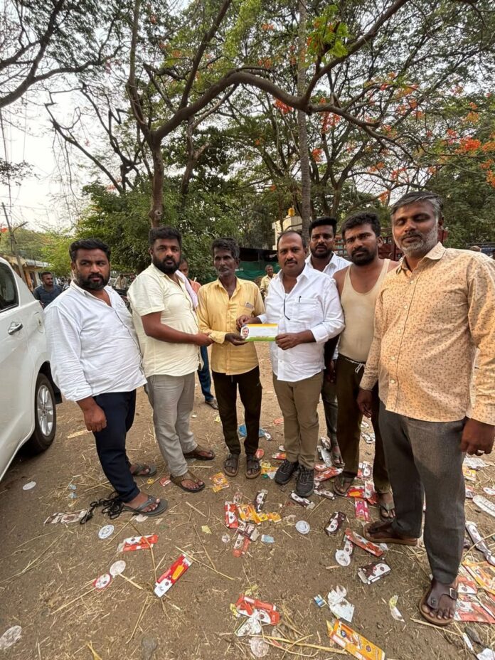 ಮದ್ದೂರು : ಶ್ರೀ ಮದ್ದೂರಮ್ಮ ದನಗಳ ಜಾತ್ರೆಗೆ ಆಗಮಿಸಿದ್ದ ರಾಸು (ದನ) ಬಿಸಿಲಾಘತದಿಂದ ಸಾವನ್ನಪ್ಪಿದ್ದ ಕಾರಣ ಮಾಲೀಕ ರಾಜು ತಗ್ಗಹಳ್ಳಿಯವರಿಗೆ ರಾಣಿ ಐಶ್ವಯ ಡೆವಪರ್ಸ್ ಸಂಸ್ಥೆಯ ಮಾಲೀಕ ಹಳ್ಳಿಕೆರೆ ಎಚ್.ಎಲ್.ಸತೀಶ್ ಅವರು ವೈಯಕ್ತಿಕವಾಗಿ ಧನ ಸಹಾಯ ಮಾಡಿದರು. ಮುಖಂಡರಾದ ರಿತೇಶ್, ಪ್ರವೀಣ್ ಅಭಿ, ವಳಗೆರೆಹಳ್ಳಿ, ನಿತಿನ್, ಮದ್ದೂರು ನಿತಿನ್ ಹಾಜರಿದ್ದರು.