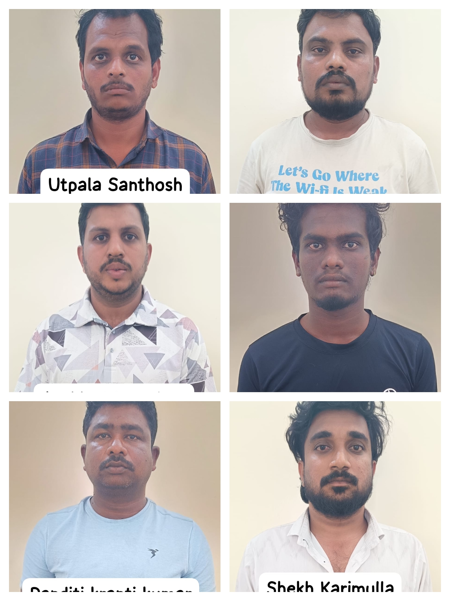 ಬಂಧಿತರನ್ನು ಶೇಖ್ ಕರೀಮುಲ್ಲಾ @ ರಸೂಲ್, ಬುಡಿದಿನ್ನೆ ವಂಶಿ @ ಗುರು, ಪಂಡಿತಿ ಕ್ರಾಂತಿ ಕುಮಾರ್, ಇಬ್ರಾಹಿಂ,