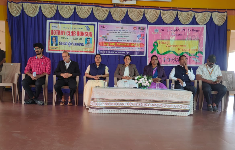 ನಗರದ ಸಂತ ಜೋಸೆಫರ ಪದವಿ ಪೂರ್ವ ಕಾಲೇಜು, ತಾಲೂಕು ಕಾನೂನು ಸಮಿತಿ, ವಕೀಲರ ಸಂಘ, ತಾಲೂಕು ಆರೋಗ್ಯ ಕೇಂದ್ರ, ಸಾರ್ವಜನಿಕ ಆಸ್ಪತ್ರೆ, ಹುಣಸೂರು ರೋಟರಿ ಸಂಸ್ಥೆ ಸಂಯುಕ್ತ ಆಶ್ರಯದಲ್ಲಿ ಹಮ್ಮಿಕೊಂಡಿದ್ದ ,ವಿಶ್ವ ಏಡ್ಸ್ ದಿನಾಚರಣೆ. ಕಾರ್ಯಕ್ರಮ ಉದ್ಘಾಟಿಸಿ, ಮಾತನಾಡಿದ ಅವರು, ಏಡ್ಸ್ ರೋಗಿಗಳನ್ನು ಮಡಿವಂತಿಕೆ ಮಾಡಿ ದೂರವಿಡುವ ಬದಲು. ಒಂದಾಣಿಕೆಯಿಂದ ಅರಿವಿನ ಮೂಲಕ. ಏಡ್ಸ್ ಒಂದು ರೋಗವಲ್ಲ ಅಲ್ಲ ಎಂದು ಜಾಗೃತಿ ಮೂಡಿಸುವ ಪ್ರಯತ್ನವಾಗಬೇಕಿದೆ ಎಂದರು.