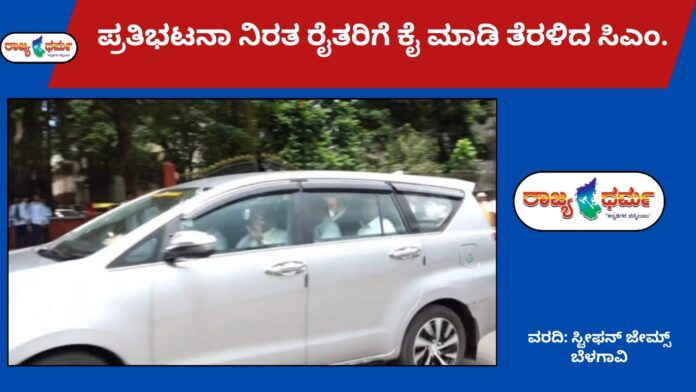ಬೆಳಗಾವಿ ವಿಮಾನ ನಿಲ್ದಾಣದಿಂದ ಸ್ಮಾರ್ಟ್ ಸಿಟಿಯಿಂದ ನಿರ್ಮಾಣವಾಗಿರುವ ನೂತನ ಬಸ್ ನಿಲ್ದಾಣ ವೀಕ್ಷಣೆ ಮಾಡಿ ಬಿಮ್ಸ್ ಸೂಪರ್ ಶ್ಪೇಶಾಲಿಟಿ ಆಸ್ಪತ್ರೆಯ ಲೋಕಾರ್ಪಣೆಗೆ ತೆರಳುತ್ತಿದ್ದ ಮುಖ್ಯಮಂತ್ರಿ ಸಿದ್ದರಾಮಯ್ಯ ರೈತರ ನಡೆಸುತ್ತಿರುವ ಪ್ರತಿಭಟನೆ ಕಂಡು ಕಾರಿನಲ್ಲಿಯೇ ಕೈ ಮಾಡಿ ತೆರಳಿದರು.