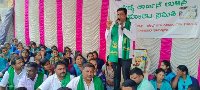 ಪಟ್ಟಣದ ಕೆಎಸ್ ಐಸಿ ಘಟಕ ಮುಂಭಾಗದಲ್ಲಿ ಕಳೆದ 9 ದಿನಗಳಿಂದ ಕಾರ್ಖಾನೆ ಆವರಣದಲ್ಲಿ ಕ್ರೀಡಾಂಗಣ ನಿರ್ಮಾಣ ವಿರೋಧಿಸಿ ಕಾರ್ಮಿಕರು ಹಾಗೂ ವಿವಿಧ ಸಂಘಟನೆಗಳು ನಡೆಸುತ್ತಿರುವ ಪ್ರತಿಭಟನೆಗೆ ಬೆಂಬಲ ವ್ಯಕ್ತಪಡಿಸಿ ಮಾತನಾಡಿದ ಅವರು, ಭಾರತೀಯ ರೇಷ್ಮೆಗಳ ಮಹಾರಾಣಿ ಉಳಿಸಲು ಹಾಗೂ ಕೆಎಸ್ಐಸಿ ರೈತ ಕಾರ್ಮಿಕರ ಹೋರಾಟಕ್ಕೆ ರೈತ ಕಲ್ಯಾಣ ಎಂದೆಂದಿಗೂ ಬೆನ್ನೆಲುಬಾಗಿದೆ ಎಂದರು.