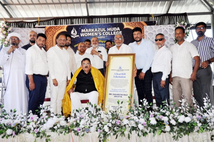 ಕನ್ನಡ ರಾಜ್ಯೋತ್ಸವ ಪ್ರಶಸ್ತಿ ಪಡೆದ ಅವರಿಗೆ ದಕ್ಷಿಣ ಕನ್ನಡ ಜಿಲ್ಲೆಯ ಪುತ್ತೂರಿನ ಕುಂಬ್ರ ಮರ್ಕಝುಲ್ ಹುದಾ ಮಹಿಳಾ ಕಾಲೇಜಿನಲ್ಲಿ ಏರ್ಪಡಿಸಲಾದ ಅಬಿನಂಧನಾ ಕಾರ್ಯಕ್ರಮದಲ್ಲಿ ಅವರು ಮಾತನಾಡಿದರು. ಆಡಳಿತ ಸಮಿತಿ ಮತ್ತು ಅತಿಥಿಗಳು ಸೇರಿ ಶಾಲು ಹೊದಿಸಿ ಬೃಹತ್ ಗಾತ್ರದ ಸ್ಮರಣಿಕೆ ನೀಡಿ ಅವರನ್ನು ಸನ್ಮಾನಿಸಲಾಯಿತು.