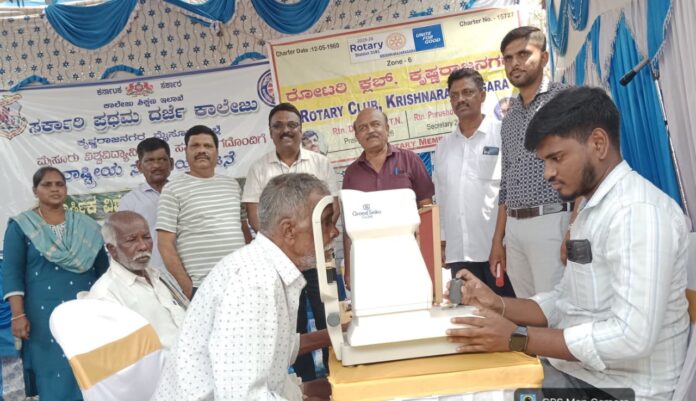 ಕೆ.ಅರ್.ನಗರ : ಕೆ‌.ಅರ್.ನಗರದ ಸರ್ಕಾರಿ ಪ್ರಥಮ ದರ್ಜೆ ಕಾಲೇಜ್ ಇವರ ವತಿಯಿಂದ ಚಿಕ್ಕವಡ್ಡರಗುಡಿ ಗ್ರಾಮದಲ್ಲಿ ನಡೆಯುತ್ತಿರುವ ರಾಷ್ಟ್ರೀಯ ಸೇವಾ ಯೋಜನೆ ವಾರ್ಷಿಕ ಶಿಬಿರದಲ್ಲಿ ಕೆ ಆರ್ ನಗರದ ಶರತ್ ಕಣ್ಣಿನ ಆಸ್ಪತ್ರೆ ಹಾಗೂ ರೋಟರಿ ಕ್ಲಬ್ ಇವರ ಸಂಯೋಜನೆಯಲ್ಲಿ ಉಚಿತ ನೇತ್ರ ತಪಾಸಣೆ ಕಾರ್ಯಕ್ರಮವನ್ನು ಆಯೋಜಿಸಲಾಗಿತ್ತು.
