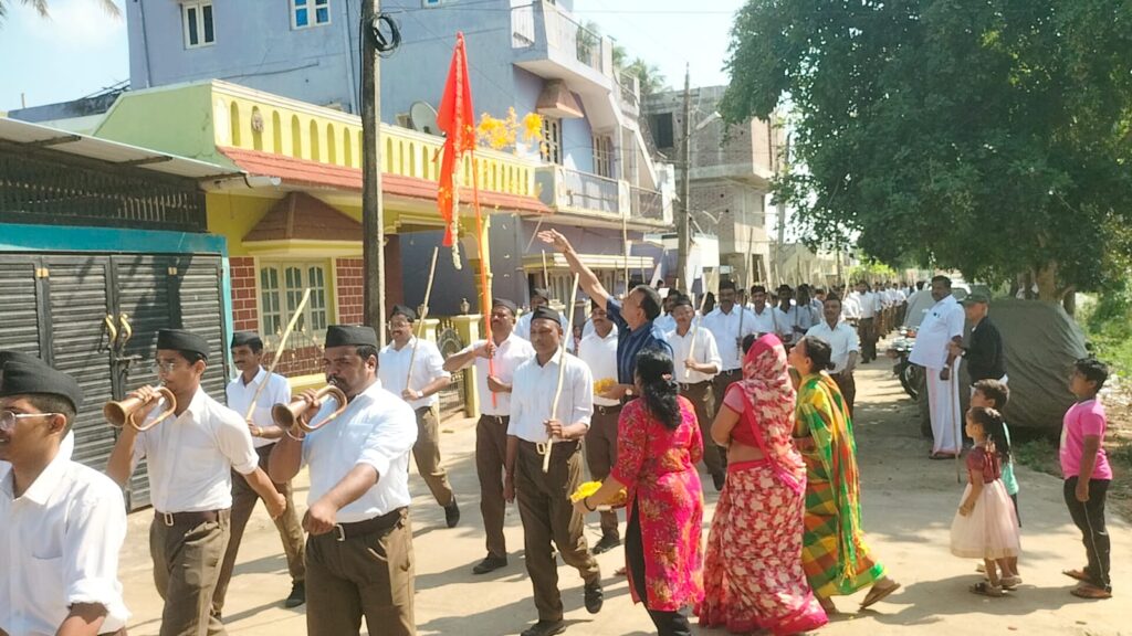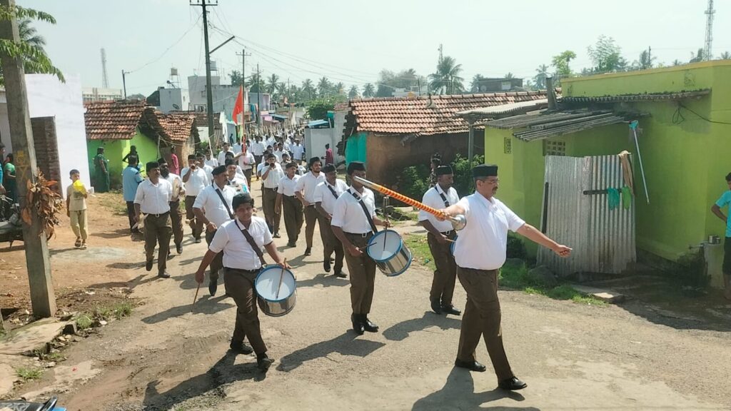 ತಾಲ್ಲೂಕು ರಾಷ್ಟ್ರೀಯ ಸ್ವಯಂಸೇವಕ ಸಂಘದ ವತಿಯಿಂದ ಪಟ್ಟಣದ ಗಣಪತಿ ದೇವಸ್ಥಾನ ಹೌಸಿಂಗ್ ಬೋರ್ಡ್ ನಿಂದ ಹೊರಟು ಪಟ್ಟಣದ ಪ್ರಮುಖ ರಸ್ತೆಗಳಲ್ಲಿ ಗಣವೇಶದಾರರು ಆಕರ್ಷಕ ಪಥಸಂಚಲನ ನಡೆಸಿದ ನಂತರ ಮಾತನಾಡಿದರು. ರಾಷ್ಟ್ರಹಿತ, ಶಿಸ್ತು, ತ್ಯಾಗ ಮತ್ತು ಸಮರ್ಪಣೆಯ ಭಾವ ರಾಷ್ಟ್ರೀಯ ಸ್ವಯಂಸೇವಕ ಸಂಘದ ಮೂಲ ದ್ಯೆಯವಾಕ್ಯವಾಗಿದೆ ಎಂದರು.