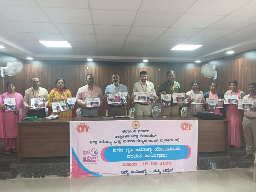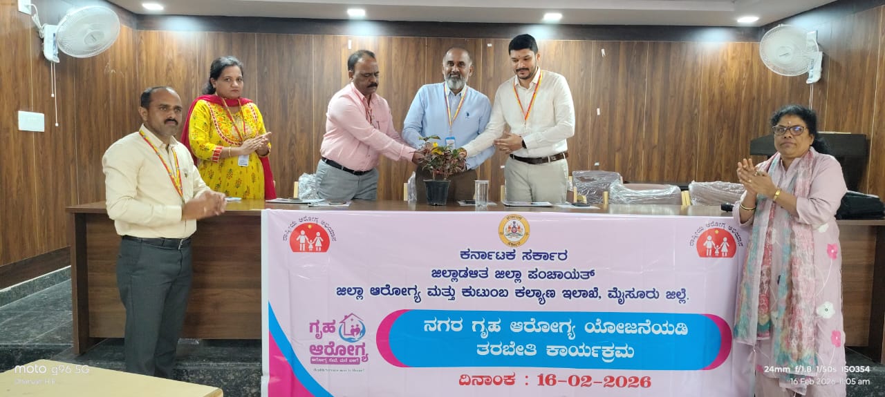 ಮೈಸೂರು: ಕರ್ನಾಟಕ ರಾಜ್ಯ ಸರ್ಕಾರದ ಮಹತ್ವಾಕಾಂಕ್ಷಿ ಕಾರ್ಯಕ್ರಮವಾದ ಗೃಹ ಆರೋಗ್ಯ ಯೋಜನೆಯನ್ನು ನಗರ ಪ್ರದೇಶಕ್ಕೆ ವಿಸ್ತರಿಸುತ್ತಿರುವ ಹಿನ್ನೆಲೆಯಲ್ಲಿ ಸದರಿ ಕಾರ್ಯಕ್ರಮದ ಕ್ರಿಯಾ ಯೋಜನೆ ಮತ್ತು ಕಾರ್ಯಕ್ರಮದ ರೂಪುರೇಷೆಯ ತಿಳಿದುಕೊಳ್ಳಬೇಕು ಎಂದು ಜಿಲ್ಲಾ ಆರೋಗ್ಯ ಮತ್ತು ಕುಟುಂಬ ಕಲ್ಯಾಣ ಅಧಿಕಾರಿಗಳಾದ ಡಾ. ಕುಮಾರಸ್ವಾಮಿ ಪಿಸಿ ರವರು ತಿಳಿಸಿದರು.