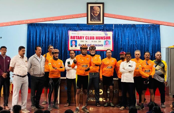 ರೋಟರಿ ಅಧ್ಯಕ್ಷ ಹೆಚ್.ಆರ್.ಕೃಷ್ಣಕುಮಾರ್ ಮಾತನಾಡಿ, ಅಂತರಾಷ್ಟ್ರೀಯ ರೋಟರಿ ಸದಸ್ಯರು ಮತ್ತು ಯೂತ್ ಫಾರ್ ನೇಶನ್ ಅವರ ತಂಡವು ಸ್ವದೇಶಿ ಜಾಗರಣ ಎಂಬ ಘೋಷಣೆಯೊಂದಿಗೆ ಈ ಇಳಿವಯಸ್ಸಿನಲ್ಲೂ ಸ್ವದೇಶಿ ವಸ್ತುಗಳ ಬಳಕೆಗೆ ಸೈಕ್ಲಿಂಗ್ ಮೂಲಕ. ಅದು ಈ ಚಳಿಯಲ್ಲಿ ಒಂದು ಚಳುವಳಿ ಆರಂಬಿಸಿ. ನಾಡಿನ ಜನತೆಗೆ ಅತ್ಯಂತ ನಿಸ್ವಾರ್ಥದಿಂದ ಜಾಗೃತಿ ಮೂಡಿಸುವ ಪ್ರಯತ್ನ ಶ್ಲಾಘನೀಯವೆಂದರು.