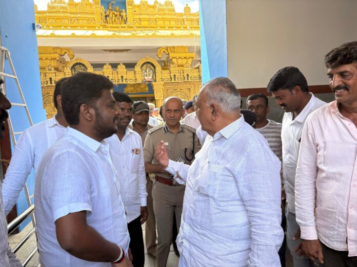 ಹಾಸನ : ಸಾರಿಗೆ ಮತ್ತು ಮುಜರಾಯಿ ಸಚಿವ ರಾಮಲಿಂಗಾರೆಡ್ಡಿ ಅವರು ಶ್ರೀ ಹಾಸನಾಂಬ ದೇವಿ ದರ್ಶನ ಹಾಗೂ ಶ್ರೀ ಸಿದ್ದೇಶ್ವರ ಸ್ವಾಮಿ ಜಾತ್ರಾ ಮಹೋತ್ಸವದ ಹಿನ್ನಲೆಯಲ್ಲಿ ಇಂದು ದೇವಾಲಯಕ್ಕೆ ಭೇಟಿ ನೀಡಿ ಸಿದ್ದತೆಗಳನ್ನು ಪರಿಶೀಲಿಸಿ ಅಧಿಕಾರಿಗಳಿಗೆ ಕೆಲವು ಸಲಹೆ ಸೂಚನೆಗಳನ್ನು ಅಧಿಕಾರಿಗಳಿಗೆ ನೀಡಿದರು.