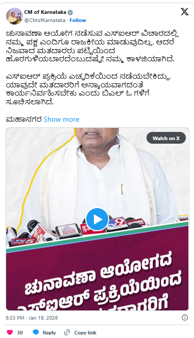 HomeರಾಜಕೀಯSIR ವಿಚಾರದಲ್ಲಿ ನಮ್ಮ ಪಕ್ಷ ಎಂದಿಗೂ ರಾಜಕೀಯ ಮಾಡುವುದಿಲ್ಲ : ಸಿಎಂ ಸಿದ್ದರಾಮಯ್ಯ