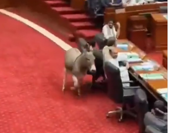 ಈ ಮಧ್ಯೆ ಕಲಾಪ ನಡೆಯುತ್ತಿದ್ದ ಸಂದರ್ಭದಲ್ಲಿ ಕತ್ತೆಯೊಂದು ದಿಢೀರ್ ಆಗಿ ಸಂಸತ್‌ಗೆ ಎಂಟ್ರಿ ಕೊಟ್ಟಿದ್ದು ಪಾಕಿಸ್ತಾನ ಮುಜುಗರಕ್ಕೊಳಗಾಗಿದೆ. ಸಂಸತ್ತಿನಲ್ಲಿ ರಾಷ್ಟ್ರದ ಪ್ರಮುಖ ಸಮಸ್ಯೆಗಳ ಬಗ್ಗೆ ಗಂಭೀರ ಚರ್ಚೆ ನಡೆಯುತ್ತಿದ್ದಾಗಲೇ ಇದ್ದಕ್ಕಿದ್ದಂತೆ ಅನಿರೀಕ್ಷಿತವಾಗಿ ಕತ್ತೆಯೊಂದು ಸೆನೆಟ್ ಕೊಠಡಿಗೆ ಎಂಟ್ರಿ ಕೊಟ್ಟಿದ್ದು, ಈ ಘಟನೆಯಿಂದ ಅಲ್ಲಿದ್ದ ರಾಜಕೀಯ ನಾಯಕರೆಲ್ಲ ಒಂದು ಕ್ಷಣ ದಂಗಾಗಿದ್ದಾರೆ. ಮೇಲ್ಮನೆ ಕಲಾಪಗಳು ನಡೆಯುತ್ತಿದ್ದಾಗ ಕತ್ತೆ ಎಂಟ್ರಿ ಕೊಟ್ಟ ಕಾರಣ ಕೆಲ ಹೊತ್ತುಗೊಂದಲದ ವಾತಾವರಣ ಕಂಡುಬಂದಿದ್ದು ಸದ್ಯ ಈ ಕುರಿತಾದ ವಿಡಿಯೊ ಸೋಶಿಯಲ್ ‌ಮಿಡಿಯಾದಲ್ಲಿ ಭಾರಿ ವೈರಲ್ ಆಗುತ್ತಿದೆ.