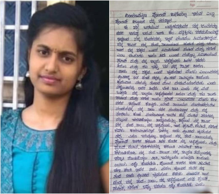 ಪತ್ರದಲ್ಲಿ ಯುವತಿಯು ನನ್ನ ತಾಯಿ ನನ್ನನ್ನು ಮಗಳು ಎಂಬುದನ್ನು ಮರೆತು ಅಸಹ್ಯವಾಗಿ ಹೊಲಸು ಪದಗಳಿಂದ ನಿಂದಿಸಿ ಜೀವನವೇ ಬೇಡ ಅನಿಸುವ ಹಾಗೆ ಮಾಡಿರುತ್ತಾರೆ. ಪಕ್ಕದ ಮನೆಯವರ ಮಾತು ಕೇಳಿ ನನ್ನ ತಂದೆಯು ನನಗೆ ನಿರಂತರ ಚಿತ್ರಹಿಂಸೆ ನೀಡುತ್ತಿದ್ದಾರೆ. ನಾನು ಬೇರೆ ಜಾತಿಯ ಯುವಕನನ್ನು ಪ್ರೀತಿಸುತ್ತಿದ್ದು ಕಾನೂನಾತ್ಮಕವಾಗಿ ನಮಗೆ ಮದುವೆಯ ವಯಸ್ಸು ಬಂದಾಗ ಮದುವೆಯಾಗುವುದರ ಬಗ್ಗೆ ನಾವು ಮನೆಯಲ್ಲಿ ಪ್ರಸ್ತಾಪ ಮಾಡಿದ ದಿನದಿಂದ ಇಲ್ಲಿಯವರೆಗೆ ನನಗೆ ನಿರಂತರ ಕಿರುಕುಳ ಉಂಟಾಗಿದೆ’ ಎಂದಿದ್ದಾಳೆ.