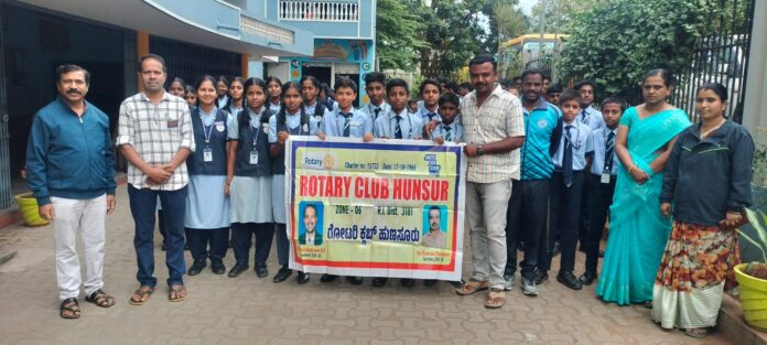 ಹುಣಸೂರು: ನಾವು ಸ್ವಚ್ಚತೆ ಕಾಪಾಡುವುದರ ಜೊತೆಗೆ ನಮ್ಮ ಸುತ್ತಲಿನ ಪರಿಸರವನ್ನು ಪರಿಣಾಮಕಾರಿಯಾಗಿ ಶುಚಿಗೊಳಿಸುವ ನಿಟ್ಟಿನಲ್ಲಿ ಜಾಗೃತಿ ಮೂಡಿಸಬೇಕು ಎಂದು ರೋಟರಿ ಸಂಸ್ಥೆ ಅಧ್ಯಕ್ಷ ಹೆಚ್.ಆರ್.ಕೃಷ್ಣಕುಮಾರ್ ತಿಳಿಸಿದರು.