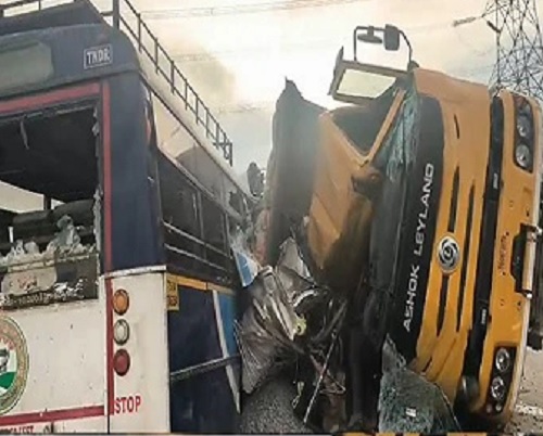 ಹೈದರಾಬಾದ್: ಸರ್ಕಾರಿ ಬಸ್ ಗೆ ಲಾರಿ ಡಿಕ್ಕಿಯಾಗಿ ಭೀಕರ ಅಪಘಾತದಲ್ಲಿ 24 ಮಂದಿ ಸಾವನ್ನಪ್ಪಿರುವ ಘಟನೆ ತೆಲಂಗಾಣದ ರಂಗಾರೆಡ್ಡಿ ಜಿಲ್ಲೆಯ ಚೆವೆಲ್ಲಾ ಬಳಿಯ ಮಿರ್ಜಗುಡದಲ್ಲಿದಲ್ಲಿ ನಡೆದಿದೆ.