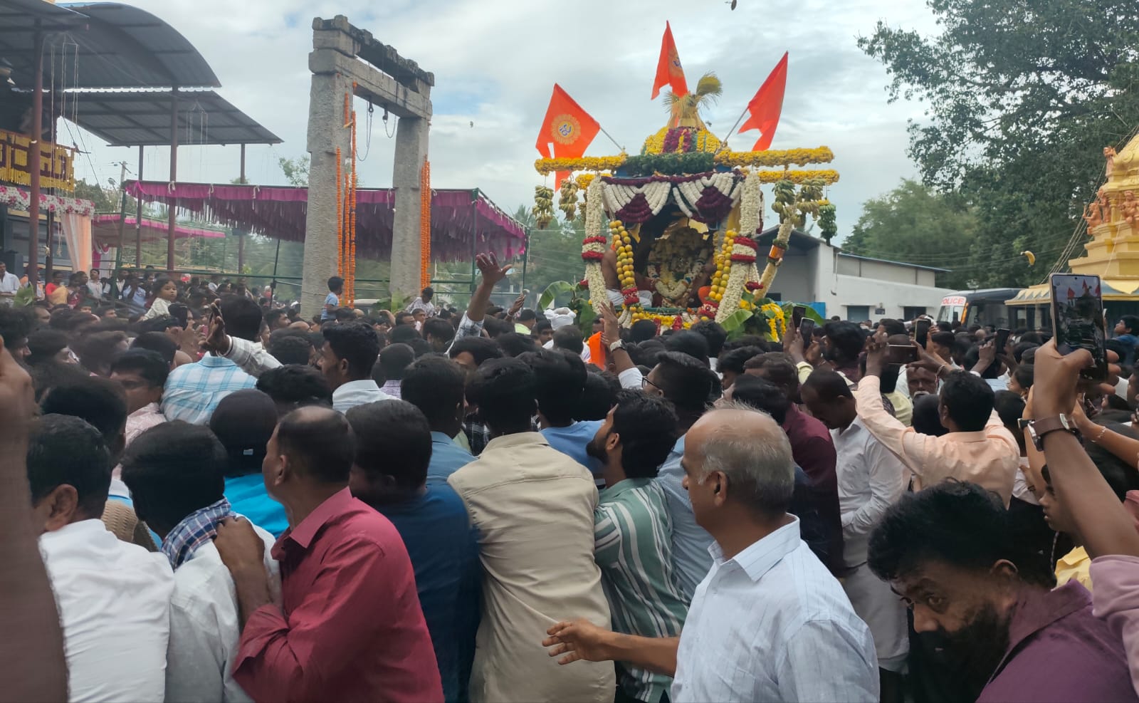 ಭಾನುವಾರ ಮುಂಜಾನೆಯಿಂದಲೇ ದೇವಸ್ಥಾನದಲ್ಲಿ ದೇವರ ಮೂರ್ತಿಗೆ ವಿಶೇಷ ಅಲಂಕಾರ ಮಾಡಿ ಧಾರ್ಮಿಕ ವಿಧಿ ವಿಧಾನಗಳಂತೆ ವಿಶೇಷ ಪೂಜಾ ಕಾರ್ಯಗಳನ್ನು ನೆರವೇರಿಸಿ ಅಡ್ಡಪಲ್ಲಕ್ಕಿಯಲ್ಲಿ ಕೂರಿಸಿ ದೇವಸ್ಥಾನ ಹಾಗೂ ರಥದ ಸುತ್ತ ಪ್ರದಕ್ಷಣೆ ಮಾಡಿದ ನಂತರ ರಥವನ್ನು ಶೃಂಗಾರ ಮಾಡಿ ದೇವರ ಮೂರ್ತಿಯನ್ನು ರಥದಲ್ಲಿ ಪ್ರತಿಷ್ಠಾಪಿಸಲಾಯಿತು.
