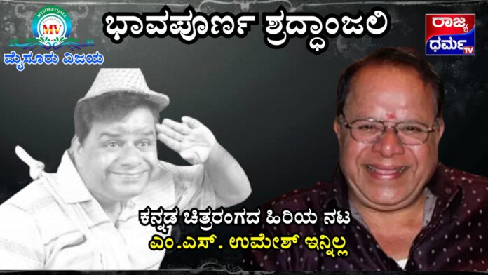 ನಮ್ಮನ್ನೆಲ್ಲ ನಕ್ಕು ನಗಿಸಿದ ಕನ್ನಡ ಚಿತ್ರರಂಗದ ದಿಗ್ಗಜ ಎಂ .ಎಸ್. ಉಮೇಶ್ ರವರಿಗೆ (ಪ್ರೀತಿಯ ಉಮೇಶಣ್ಣ ಗೆ ) ಮೈಸೂರು ವಿಜಯ ದಿನಪತ್ರಿಕೆ ಹಾಗು ರಾಜ್ಯಧರ್ಮ ವತಿಯಿಂದ ಭಾವಪೂರ್ಣ ಶ್ರದ್ಧಾಂಜಲಿ