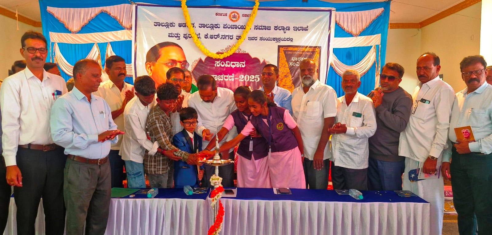 ಪಟ್ಟಣದ ತಾಲೂಕು ವಾಲ್ಮೀಕಿ ನಾಯಕರ ಸಮುದಾಯ ಭವನದಲ್ಲಿ ತಾಲೂಕು ಆಡಳಿತ, ತಾಲೂಕು ಪಂಚಾಯಿತಿ, ಪುರಸಭೆ ಹಾಗೂ ಸಮಾಜ ಕಲ್ಯಾಣ ಇಲಾಖೆ ವತಿಯಿಂದ ಬುಧವಾರ ಆಯೋಜಿಸಿದ್ದ ಸಂವಿಧಾನ ದಿನ ಆಚರಣೆ ಕಾರ್ಯಕ್ರಮವನ್ನು ಉದ್ಘಾಟಿಸಿ ಮಾತನಾಡಿದ ಅವರು ಸಂವಿಧಾನದಿoದ ದೇಶದ ಎಲ್ಲರು ಗೌರವಯುತವಾಗಿ ಬದುಕಲು ಹಕ್ಕುಗಳನ್ನು ನೀಡಿದ ಡಾ.ಬಿ.ಆರ್.ಅಂಬೇಡ್ಕರ್ ರವರಿಗೆ ನಾವೆಲ್ಲ ಕೃತಜ್ಞರಾಗಬೇಕು ಎಂದು ಹೇಳಿದರು.